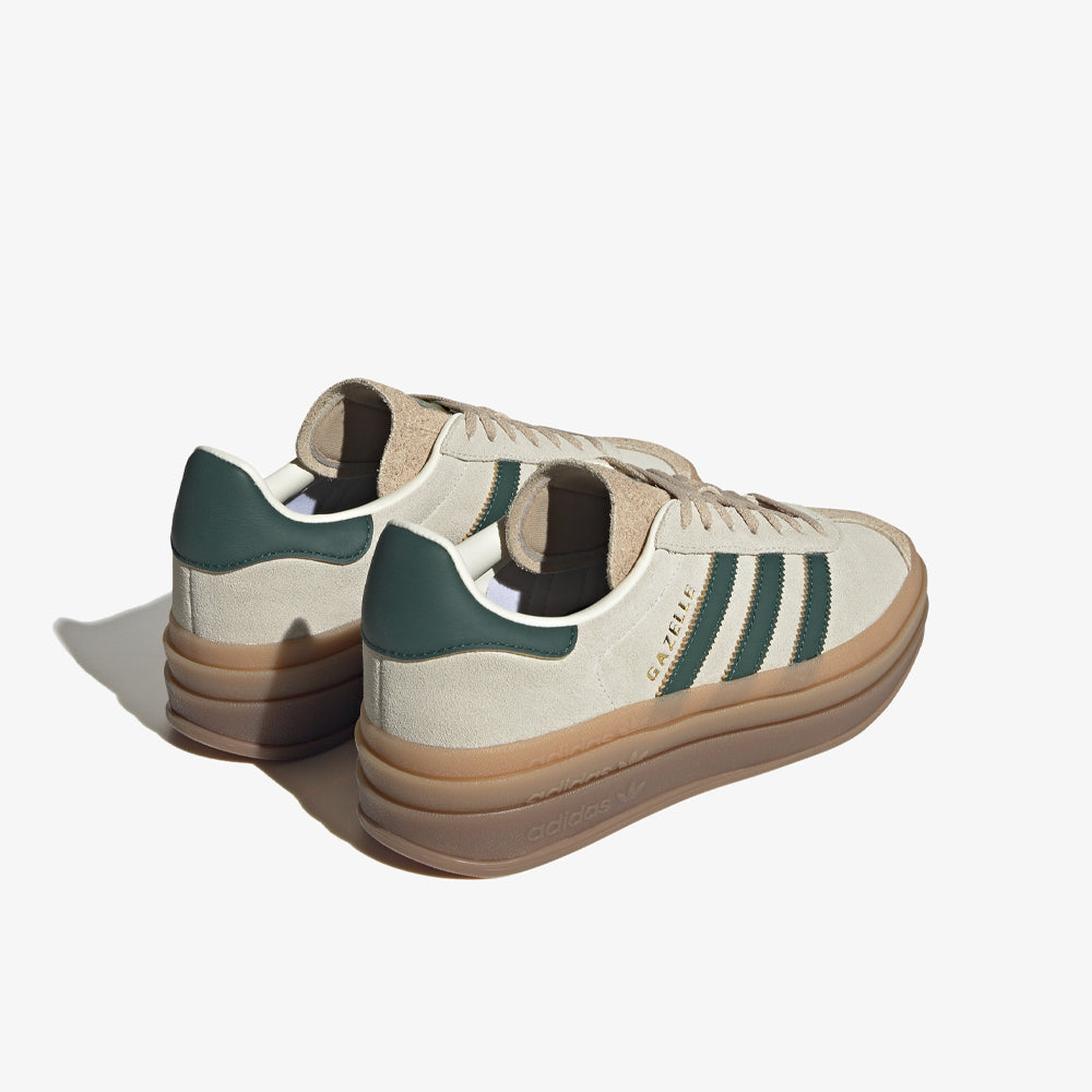 L’Adidas Gazelle Bold W (référence ID7056) revisite l’icône des années 60 dans une version modernisée et audacieuse, avec une semelle plateforme distinctive. Habillée de suède crème, accentuée par des bandes vert foncé Collegiate Green et des détails Magic Beige, cette édition féminine mêle élégance vintage et esprit contemporain.