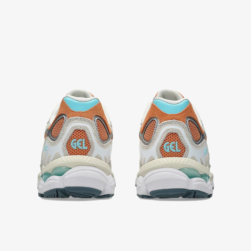 La Asics Gel-NYC (référence 1203A383-600) fusionne les influences running des années 2000 avec une esthétique moderne. Sa tige en mesh respirant Terracotta, associée à des superpositions Cream en cuir synthétique, crée un contraste élégant et texturé.