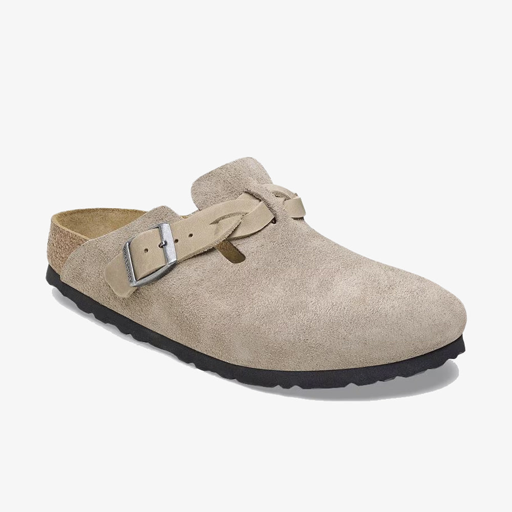 L’iconique sabot Boston sublimé par un détail tressé élégant. La Birkenstock Boston Braided Taupe revisite l’un des modèles les plus emblématiques de la marque en ajoutant une touche artisanale subtile : une bride tressée qui vient sublimer son design intemporel. Confortable, polyvalente et raffinée, cette version en suède taupe est idéale pour une allure décontractée et sophistiquée, aussi bien en intérieur qu’en extérieur.
