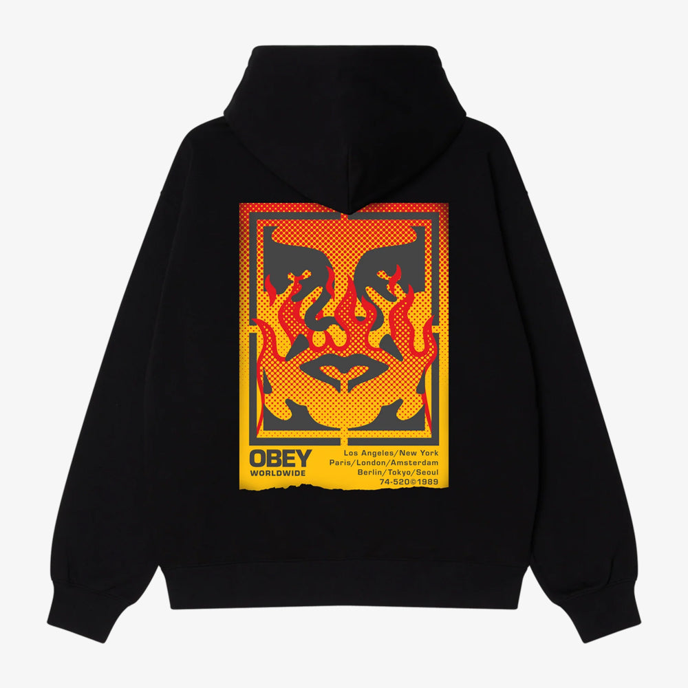 Le Obey Icon Stencil Flame Pullover (référence 117464048-BLK) affiche au dos l’icône emblématique Obey stylisée en version flamme, pour un visuel percutant sur fond Black. Ce hoodie allie l’esthétique brute du stencil à une construction confortable et durable, parfaite pour affirmer son style tout en restant fidèle à l’esprit subversif de la marque.