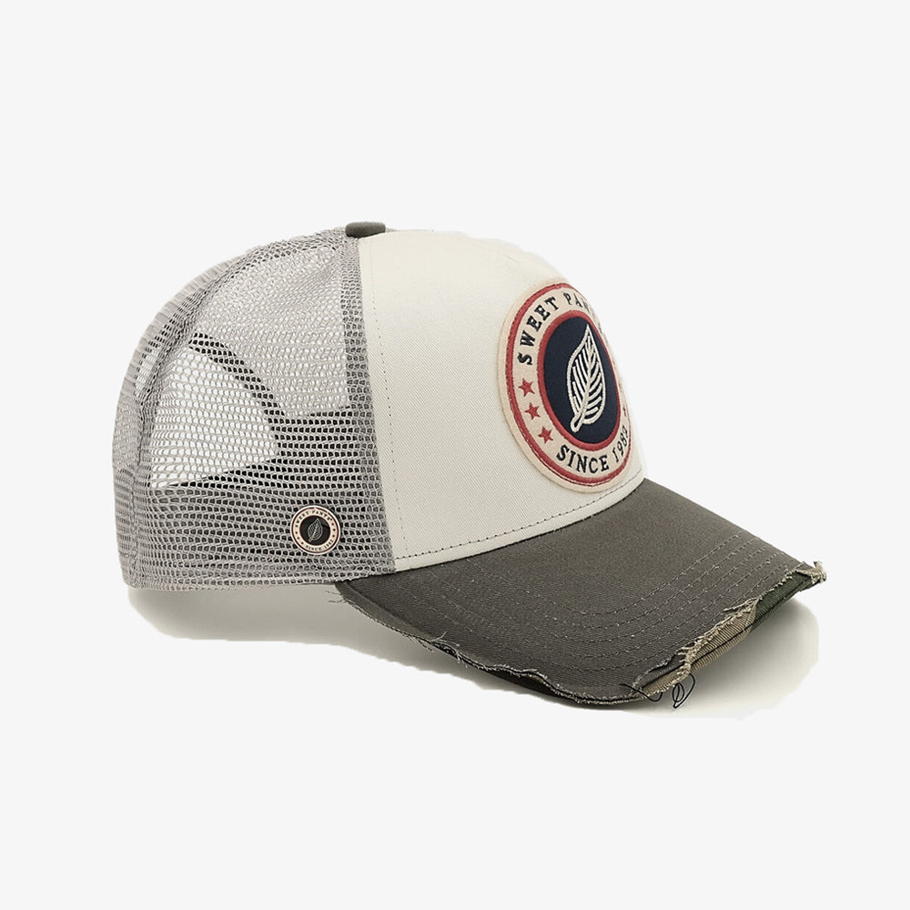 La Sweet Pants Home Run Cap Grey revisite l’iconique casquette trucker avec un design sobre et intemporel. Sa face avant en coton blanc cassé est associée à une visière grise et un filet arrière ton sur ton, pour un look urbain polyvalent qui se marie avec toutes vos tenues.