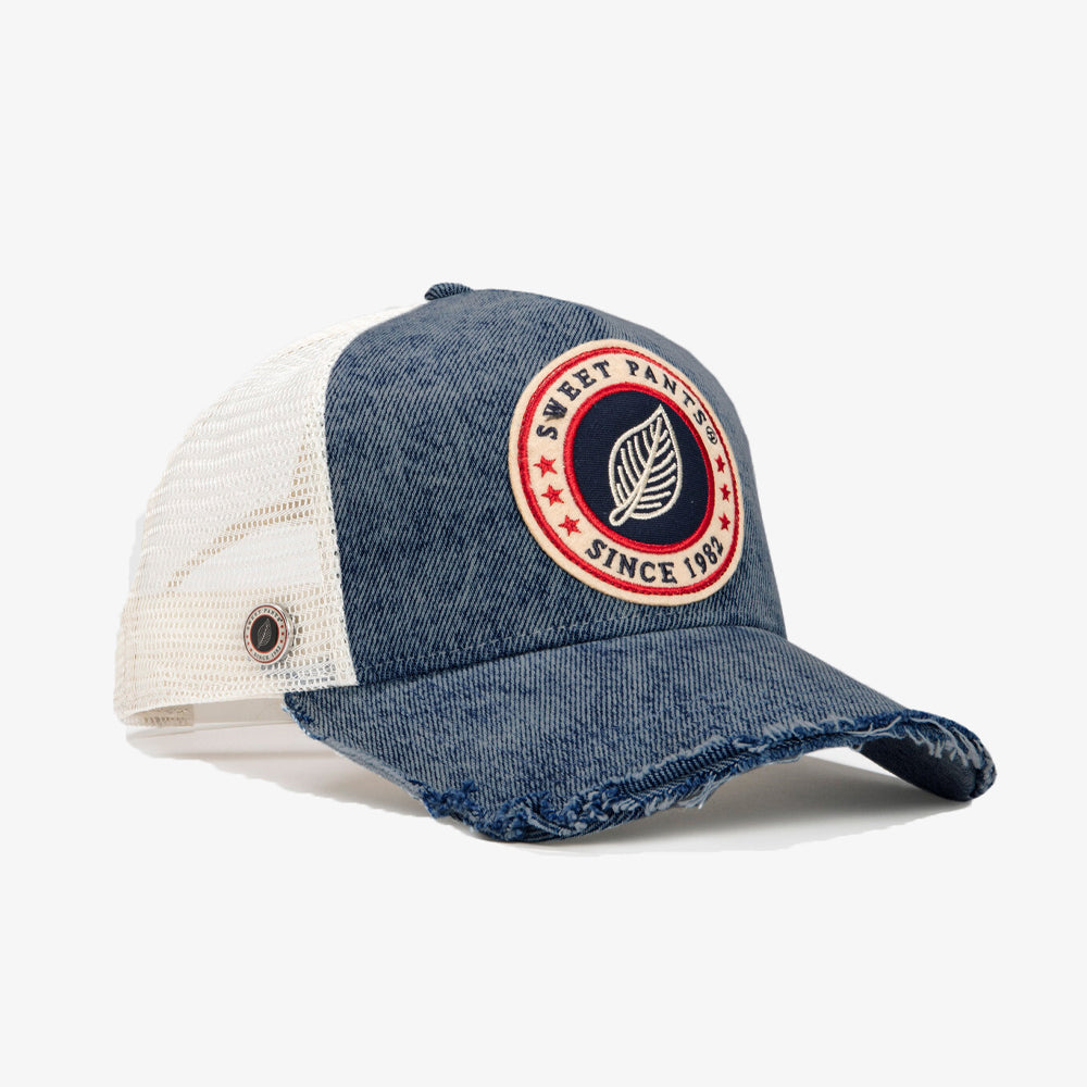 La casquette Sweet Pants Home Run Denim Snow Off White revisite l’iconique trucker avec une touche denim authentique et un esprit vintage affirmé. Sa face avant et sa visière en toile denim usée contrastent avec l’arrière en filet blanc, pour un look à la fois décontracté et tendance.